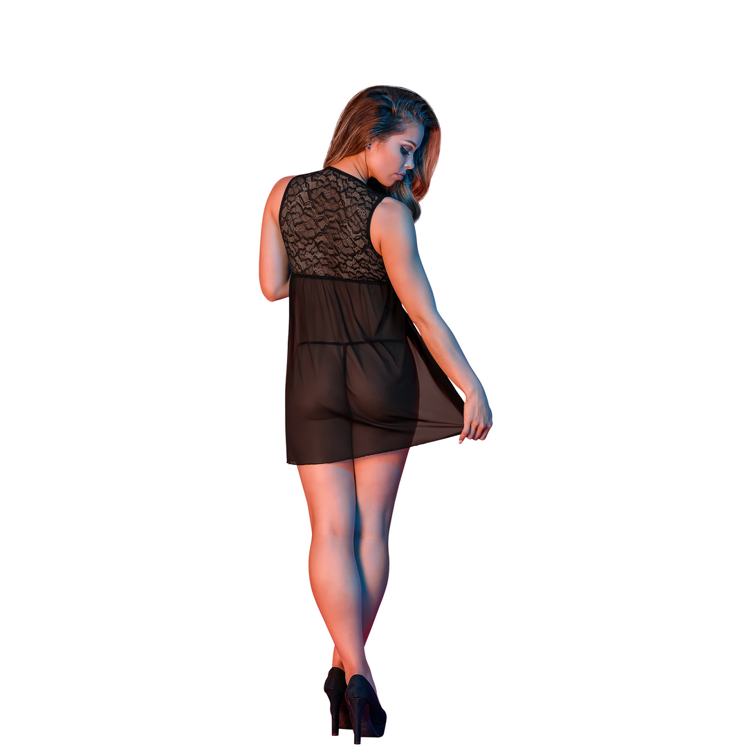 Babydoll met Open Rug en G-String Set – L/XL – Zwart