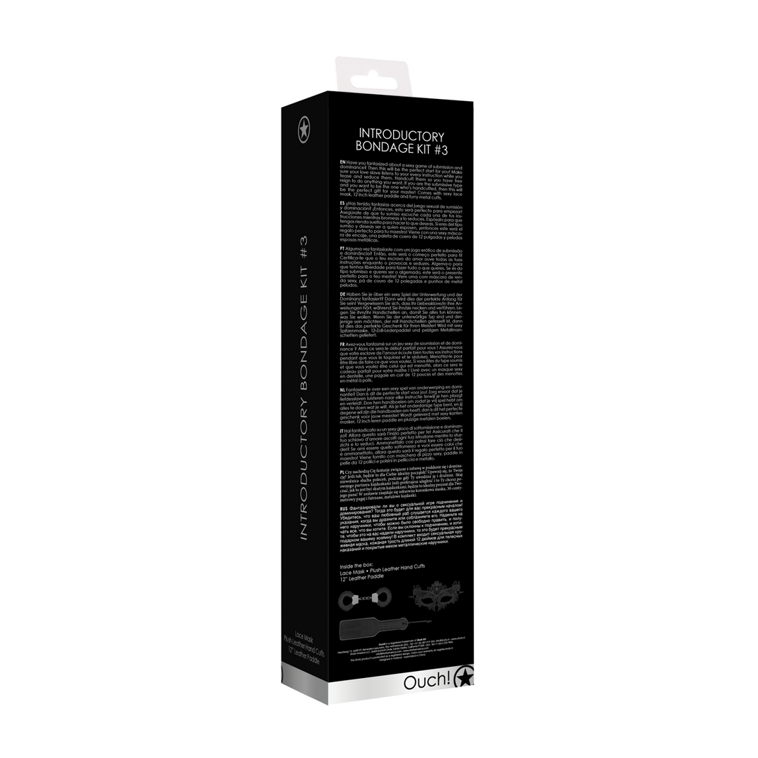 Perfecte bondage kit voor beginnersDe doos bevat alles wat je nodig hebt om je partner te plagen of een extremer rollenspelDeze kit is alleen verkrijgbaar in ZwartWordt geleverd met een sexy kanten masker, 30 cm leren peddel en harige metalen manchettenOntdek je donkere kant/