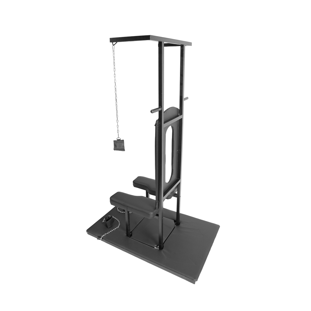Geef je seksleven een extra boost met deze multifunctionele Love Chair die in geen enkele BDSM-collectie mag ontbreken!Laat je fantasie de vrije loop bij alle mogelijkheden die deze stoel te bieden heeft, zoals posities die voorheen misschien moeilijk uit te voeren waren of die in de loop van de tijd oncomfortabel werden.De Love Chair wordt geleverd met een uiterst stevig onderstel waarop een hoogwaardig stalen frame is gemonteerd. De met dik schuimrubber gevoerde beensteunen en open rugleuning zijn bekleed met duurzaam, gemakkelijk schoon te maken PU-leer. De Love Chair wordt geleverd met roestvrijstalen kettingen, inclusief afneembare hand- en enkelboeien, die beide zijn voorzien van klittenband.Creƫer je eigen intieme fantasiewereld en laat jezelf helemaal gaan!De Love Chair is 183 cm hoog, 76 cm breed en 120 cm lang.