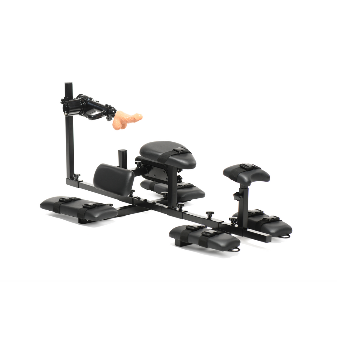 Zet je partner vast in een sexy, horizontale schandpaal! Deze schandpaal stelt hen in staat om op hun buik te liggen in plaats van rechtop te staan of te knielen. Het is perfect voor degenen die moderne dungeon-stijl restrain systemen willen combineren met doggy-style penetratie! Bij de schandpaal is een compatibele sekmachine inbegrepen die aan de schandpaal kan worden bevestigd of handmatig kan worden gebruikt. De schandpaal is gemaakt van duurzaam staal en kan goed tegen ruwe spellen en lange sessies. Het heup-/taille-kussen is ook gekanteld zodat er een achterwaartse helling is! Dit tilt de billen omhoog en maakt het veel gemakkelijker om dat zoete plekje (G-spot, A-spot of P-spot) te raken! Bevestig ze met alle 10 nylon banden. Er zijn 2 banden per ledemaat en ƩƩn voor de taille en rug. Het hoofd hangt over de C-vormige neksteun. Daarnaast zijn er 4 bevestigingspunten voor boeien op elk van de ledemaatsteunen. Deze schandpaal is verstelbaar om verschillende torso lengtes te accommoderen. Alle kussens zijn zacht en gewatteerd en bedekt met vegan vriendelijk PU-leer dat comfortabel en gemakkelijk schoon te maken is. Je onderdanige zal gebogen zijn, vergelijkbaar met wanneer ze op een spankhorse zitten, zodat je hen kunt penetreren in doggy style met je lichaam, handen of de sekmachine! De sekmachine kan handmatig worden gebruikt en losgekoppeld of je kunt deze aan de machine bevestigen zodat deze automatisch tot 195 RPM duwt! De dildo is gemaakt van TPE en mag alleen worden gebruikt met op water gebaseerde glijmiddelen. Deze sekmachine wordt op het stopcontact aangesloten, zodat hij nooit zonder stroom komt te zitten. Laat je partner over de schandpaal liggen en je kunt opmerken hoe lang hun lichaam is in vergelijking met de schandpaal en aanpassingen maken. Zodra alles op zijn plaats is, bevestig ze voor een comfortabele, gewatteerde, lange sessie in restrain! Je kunt de sekmachine aanzetten en veel glijmiddel gebruiken op die krachtige, kloppende dildo. Of je kunt het loskoppelen en je handen, mond, lichaam of iets anders gebruiken wat je maar wilt. Ga op het juiste niveau zitten en laat ze je ook orale bevrediging geven! Je kunt een stoel gebruiken om voor hen te zitten terwijl je hoofd krijgt en tegelijkertijd de kloppende dildo bestuurt! Terwijl ze vastgebonden zijn, zijn ze volledig aan jouw genade overgelaten! Bereid je voor op intense genot van een zeer goede onderdanige! Om de schandpaal en de machine schoon te maken, veeg je deze schoon met speelgoedreiniger en een vochtige doek. Om de dildo schoon te maken, was je de dildo met speelgoedreiniger en warm water voor en na elk gebruik. Dep droog en bewaar op een koele, droge plaats, uit de buurt van direct zonlicht en gescheiden van andere speeltjes. Afmetingen: Totaal (bij de kleinste verstelbare maat): 140 cm Lengte x 70 cm Breedte x 56 cm Hoogte. Dildo: 17 cm totaal, 14 cm in te brengen, 4.5 cm breedste diameter. Duwlengte: 6 cm. Kinsteun past zich aan van 29 cm tot 39 cm in hoogte. Armkussens passen zich aan van 50 cm tot 65 cm in breedte. Torso-kussen past zich aan van 34 cm tot 42 cm in hoogte. Binnenbeen kussens passen zich aan van 32 cm tot 40 cm in breedte, en van 18 cm tot 30 cm in hoogte. Been kussens passen zich aan van 70 cm tot 91 cm in breedte. Sekmachine past zich aan van 16 cm tot 56 cm in hoogte. Materialen: Schandpaal: Staal, PU-leer, ABS-kunststof. Dildo: TPE. Kleur: Schandpaal: Zwart, Dildo: Licht. Opmerking: Gebruik de dildo alleen met op water gebaseerde glijmiddelen. Kinsteun, armkussens, torso-kussen en de bevestigingsbeugel van de sekmachine zijn allemaal in lengte verstelbaar langs de hoofdstaaf. Been kussens zijn bevestigd aan de hoofdarm en zijn niet verstelbaar. Belangrijkste kenmerken: Horizontale Schandpaal: Deze duurzame stalen schandpaal is georiƫnteerd zodat jij of je partner plat op de buik kunnen liggen en kunnen genieten van de comfortabele, padding van de met PU-leer bedekte kussens terwijl ze grondig vastgebonden zijn. Verstelbare Lengte: De schandpaal past zich aan in lengte om verschillende torso lengtes te accommoderen. Banden en Bevestigingspunten: Er zijn 10 nylon banden met ABS-kunststof gespen om de onderdanige op zijn plaats te houden. Twee banden voor elk ledemaat, ƩƩn achter de taille, ƩƩn achter de nek. Daarnaast zijn er 4 stalen bevestigingspunten waar je pols- en enkelboeien aan kunt bevestigen. Sekmachine Inbegrepen: De krachtige sekmachine is inbegrepen met een TPE rubberen dildo. Deze kan aan de schandpaal worden bevestigd of handmatig worden gebruikt voor een andere hoek. Duwt tot 195 keer per minuut!
