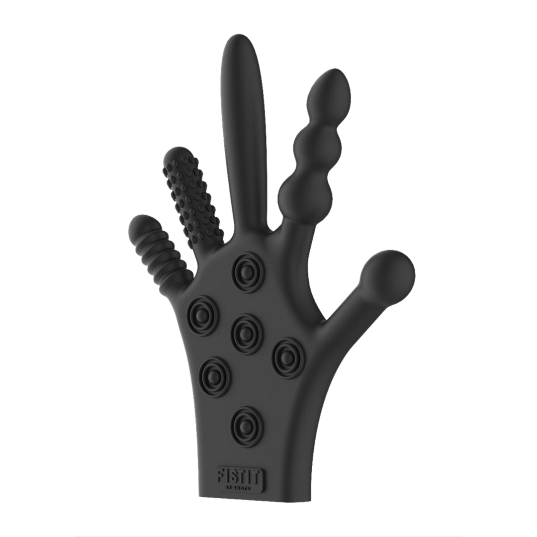 De FISTIT stimulatie handschoen geeft je de opperhand in de slaapkamer. Met aan elke vinger een andere stimulatie zorgt dit ultra- elastische speeltje voor unieke vaginale en anale stimulatie! De duim heeft een grote ronde bovenkant die gebruikt kan worden voor prostaat- of vaginale stimulatie. De wijsvinger heeft een puntige top en 3 uitstulpingen om te gebruiken zoals jij dat wenst. De middelvinger is een voor de hand liggende, gladde stimulator. De ringvinger heeft een gestippeld oppervlak voor intense stimulatie. De pink is geribbeld voor meer ongebreideld plezier. In combinatie met de zes geribbelde stimulatie ringen op de handpalm wordt deze handschoen het slaapkamer accessoire dat blijft stimuleren! Breng glijmiddel aan op je hand en schuif hem in de handschoen. Knijp in de handschoen om de lucht eruit te laten voor een strakke pasvorm. Breng ook voldoende glijmiddel aan op de handschoen zelf voor het beste resultaat!