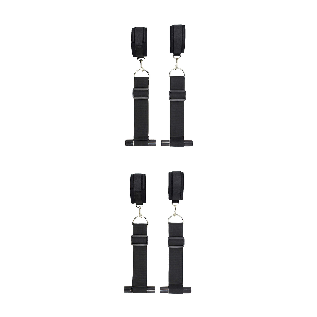 Gemakkelijk te bevestigen aan elke deur om te genieten van wat bondageplezier. Plaats de 2 acryl buizen over de bovenkant van een openstaande deur, plaats de andere 2 onder de onderkant, sluit (op slot voor de veiligheid) de deur. Bind jouw partner vast en geniet. Wordt geleverd met 4 verstelbare bevestigingen, 2 handboeien en 2 enkelboeien, 4 acryl deurbuizen en een satijnen oogmasker.