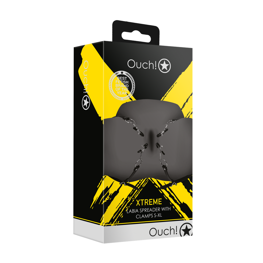 PU leather straps wraps around your thighs, clamp on your labia and spread them wide!Perfect for humiliation play and bedroom BDSMFor teasing, pleasing or exploring a submission kinkCustomize the tightness of the adjustable straps/
