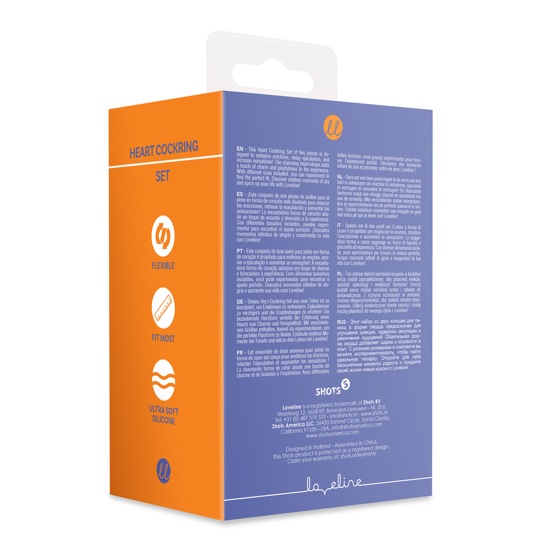 Deze set van twee penisringen in de vorm van een hart is ontworpen om erecties te verbeteren, ejaculatie te vertragen en sensaties te verhogen! De charmante hartvorm voegt een vleugje charme en speelsheid toe aan de ervaring. Met verschillende maten inbegrepen, kun je experimenteren om de perfecte pasvorm te vinden. Ontdek eindeloze momenten van vreugde en geef wat extra pit aan je leven met Loveline! De afmetingen van de kleinste ring zijn 4,5 x 0,5 x 3,9 cm en de binnendiameter is 2,9 cm. De grootste ring is 5,8 x 2,4 x 5,5 cm en heeft een binnendiameter van 3,9 cm.
