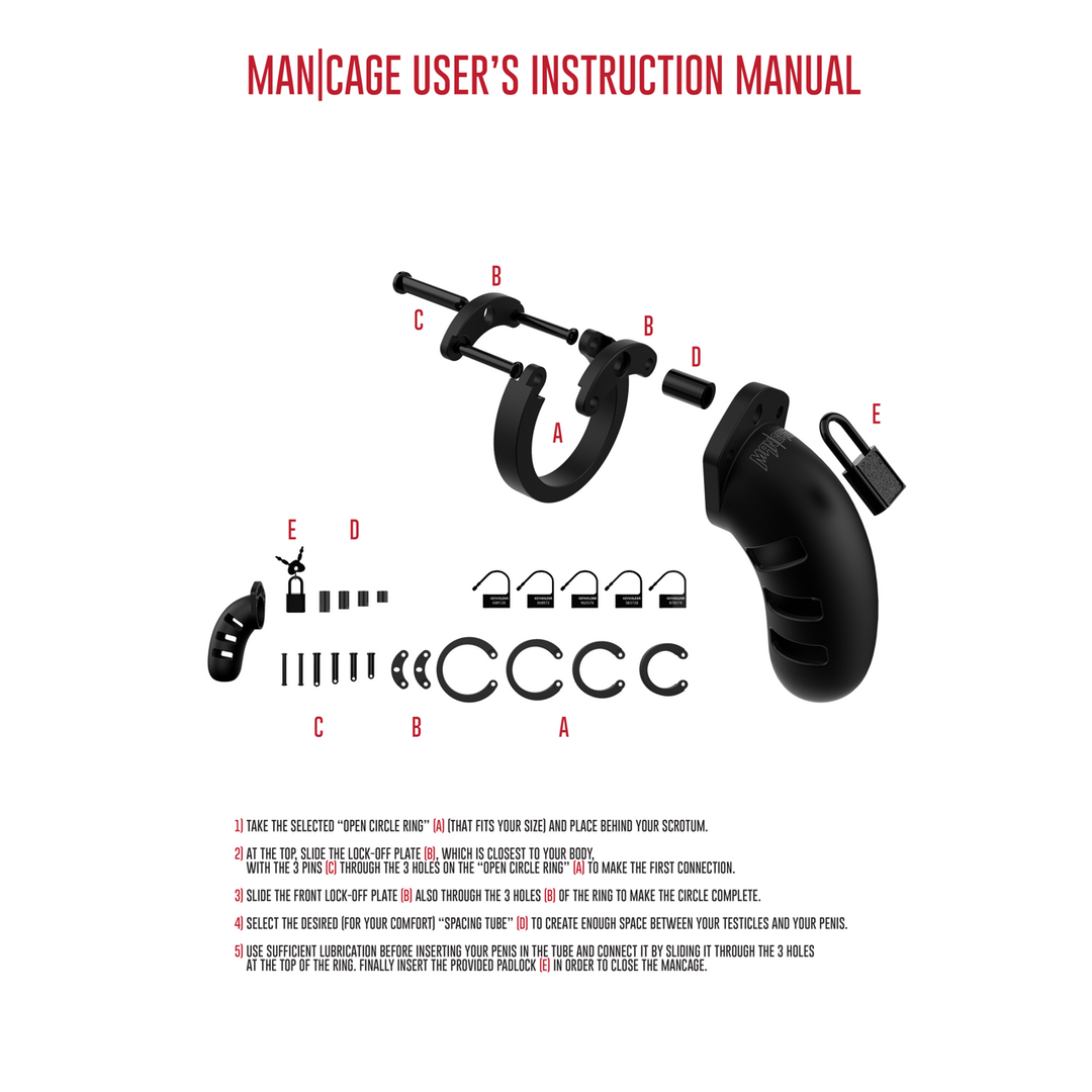 Alle ManCage Cock Cages zijn gemaakt van bacterieafstotend, duurzaam en hypoallergeen polycarbonaatDoor de kunststof locker loop je gemakkelijk door de metaaldetector en kan je de kooi probleemloos meenemen naar een feestje of op een vliegveld.Met de meegeleverde ringen kan de pasvorm worden aangepast aan elke maatDoor het juiste onderzoek is de kooi in de juiste vorm gemaakt, en is niet zichtbaar door de broek die hij draagt.Door de Cage is het niet mogelijk om een erectie te krijgen, maar er zijn wel luchtgaten en een bekkenopening./