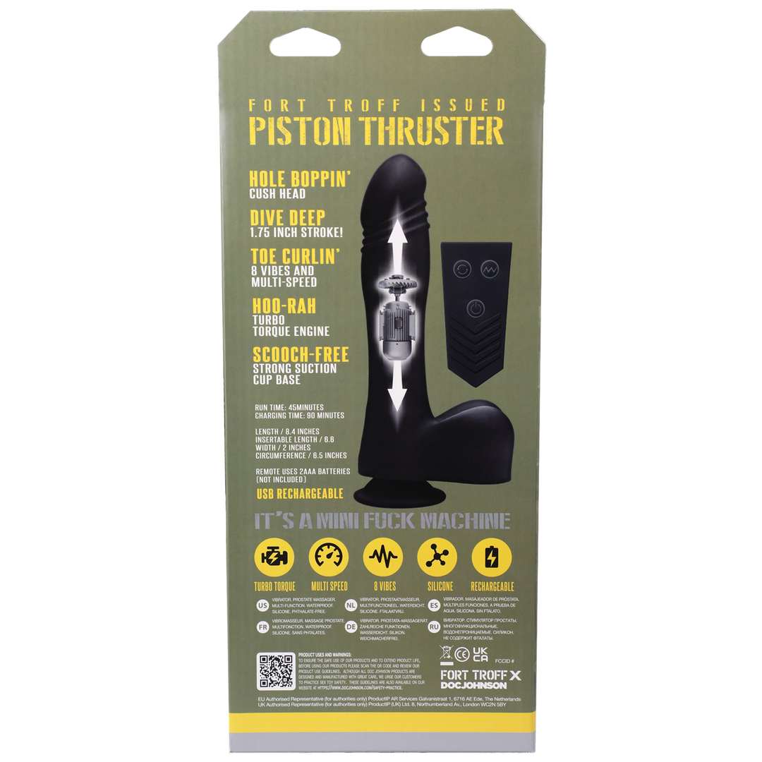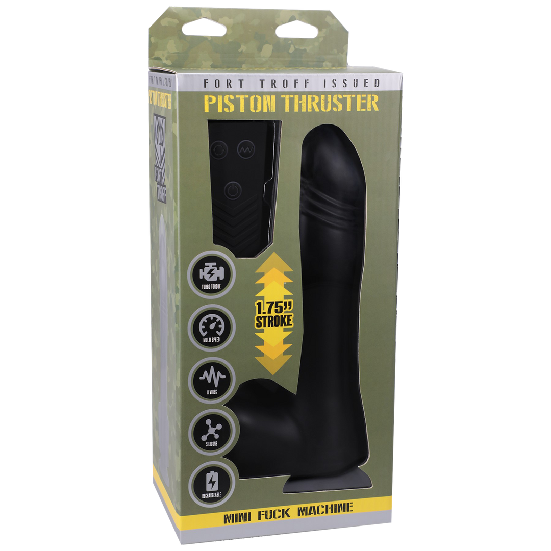 Met de Piston Thruster draait alles om de heen-en-weer slag om het echte gevoel van een harde klap Top te leveren. Met een slag van net onder de 2 inch, komt de Piston Thruster bijna overeen met de slag van grote fuck machines. De supercharged motoren van de Piston Thruster leveren de kracht om diep door te dringen. We hebben ervoor gezorgd dat hij sterk genoeg is om de strakste gaten te penetreren. De paddestoelvormige kop is super zacht en comfortabel, voor gemakkelijke toegang. Deze power top bedienen is eenvoudig⦠gebruik de afstandsbediening of de knoppen op de ballen. Je hebt 2 snelheden van fokken, die iets snellere versies van de basis slag bieden. In tegenstelling tot traditionele fuck machines, biedt de onze ook 8 vibratie-instellingen. Aangedreven door een state-of-the-art lithium batterij, is de looptijd ongeveer 45 minuten. USB oplaadbaar, en het duurt ongeveer 1,5 uur om op te laden. Gemaakt van Premium Liquid Silicone, zodat je elke soort lube kunt gebruiken. Hoewel de Piston Thruster niet fluisterstil is, vonden we dat een motor met een beetje gebrul essentieel was om de duw te leveren die varkensgaten verlangen.