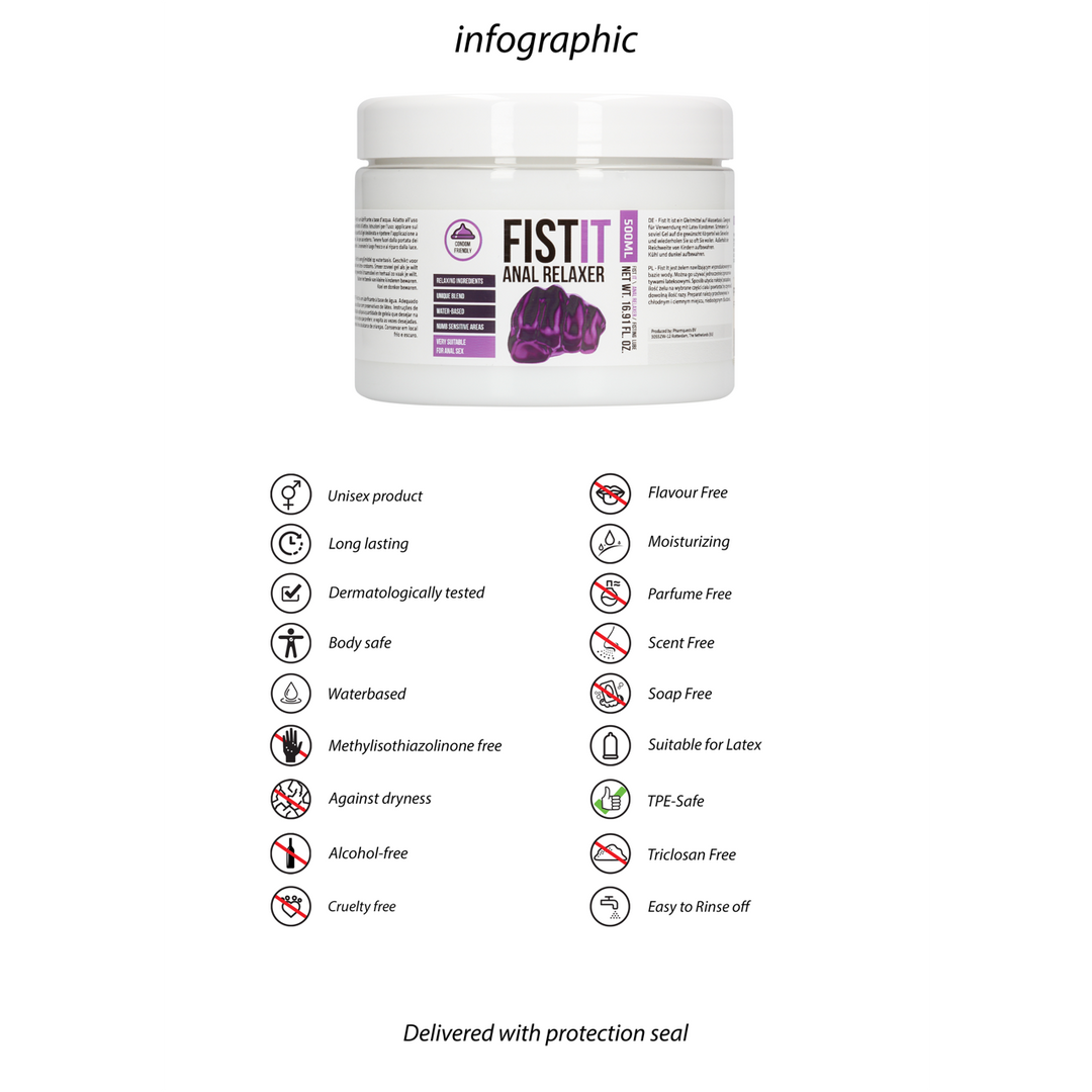 Fist It is een condoomvriendelijk glijmiddel op waterbasisBevat ontspannende ingrediƫntenBestaat uit een unieke blendGevoelloze gebiedenZeer geschikt voor anale seks/