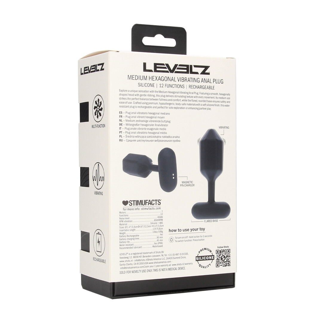 Hexagonale Vibrerende Siliconen Anale Plug – M – Zwart biedt een spannende en comfortabele ervaring dankzij de ergonomische vorm en het gekozen materiaal.