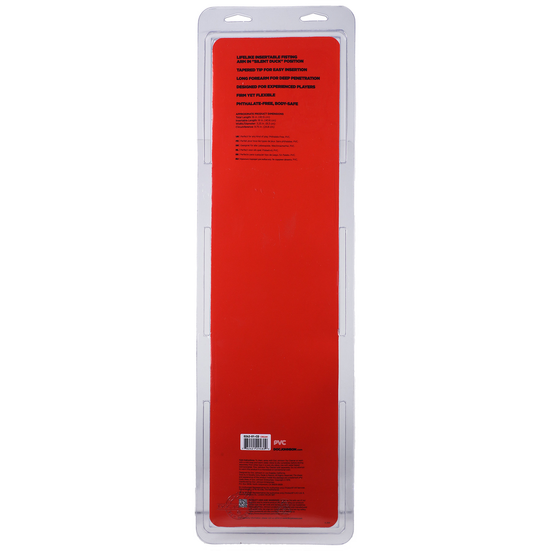 Speel met de hand die je hebt gekregen! De 16 Hand van Doc Johnson is een replica van een mannenhand met gesloten vingers en een onderarm over de volledige lengte. De flexibele hand is geschikt voor anale en vaginale avonturen. Hij is gemaakt van niet-ftalaat lichaamsveilig materiaal, die de antibacteriële Sil-A-Gel-formule van Doc bevat. Verkrijgbaar in wit. De hand is met trots gemaakt in Amerika.
