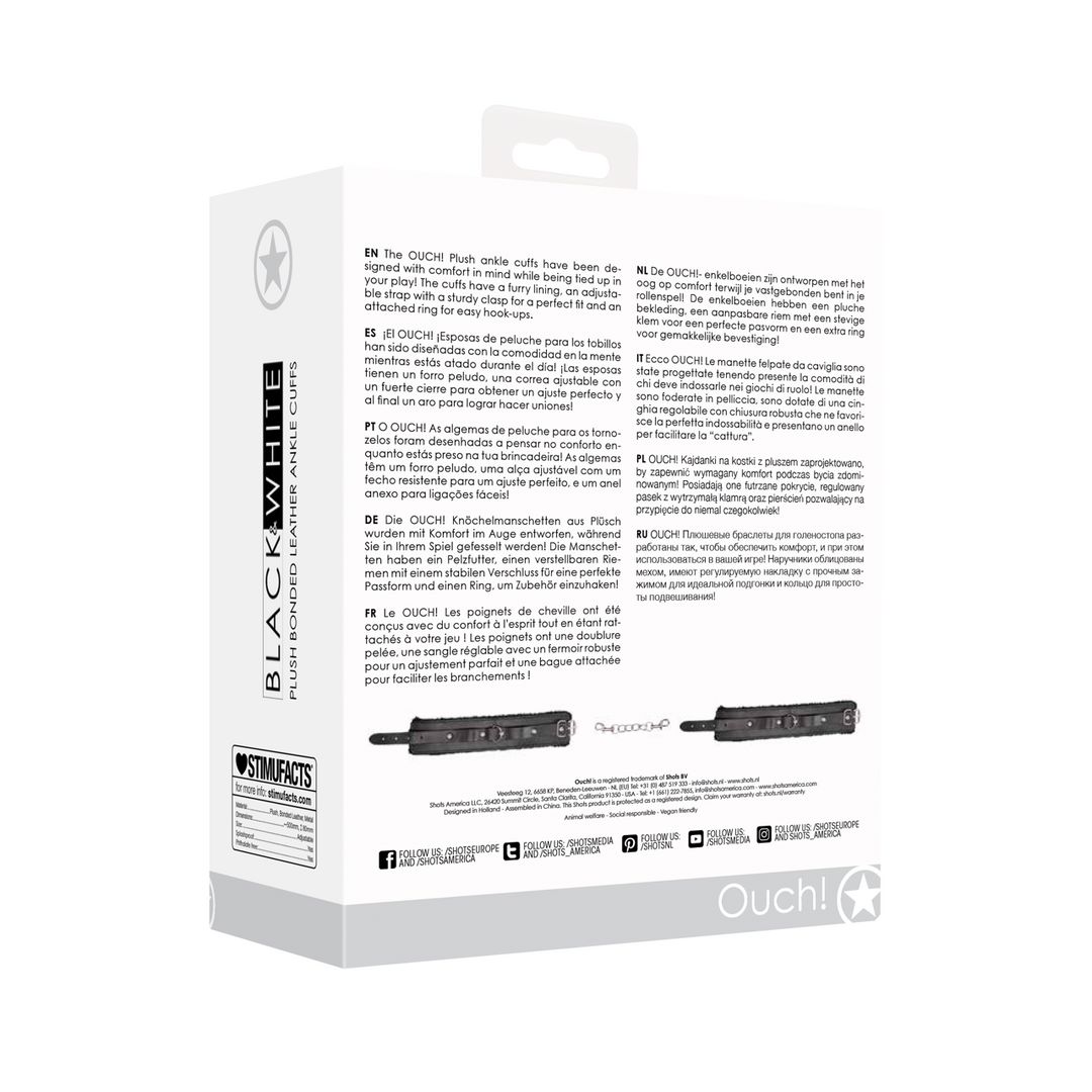 De OUCH!- enkelboeien zijn ontworpenmet het oog op comfortterwijl je vastgebonden bent in jerollenspel! De enkelboeien hebbeneen pluche bekleding, een aanpasbareriem met een stevige klem vooreen perfecte pasvorm en een extraring voor gemakkelijke bevestiging!