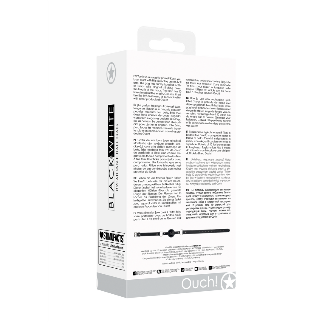 Breathable ball gagExperience incredible sensations with this toy from OuchIdeal for couples interested in kinky sex and BDSMPerfect for those who love to dominate or be dominatedBody-safe/