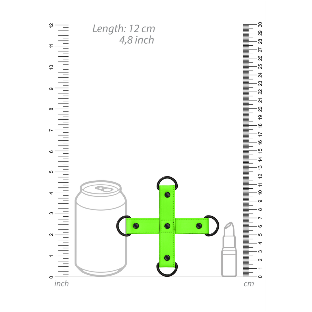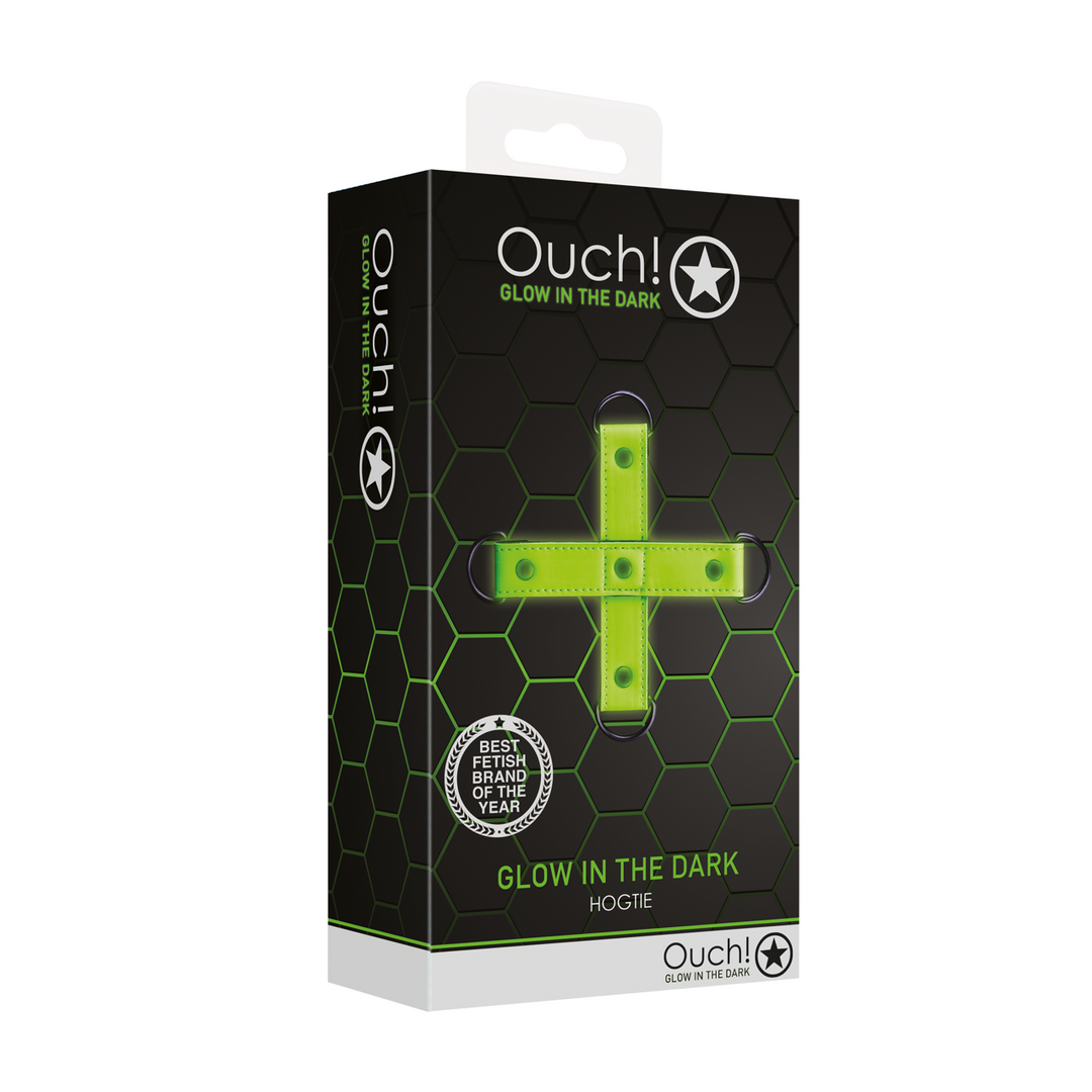 Ouch! Glow in the Dark, the future of bondage is here.Step your BDSM play up a notch with this high quality hogtie connector.Designed with an authentic bondage aesthetic, but with the added delight of the glow-in-the-dark properties, the fluorescent green detailing will turn every event into a part.Ouch! Glow-In-The-Dark products must be activated with the sunlight before enjoying it in the dark.With Ouch! Glow in the Dark, the fun is just beginning when the lights go out./