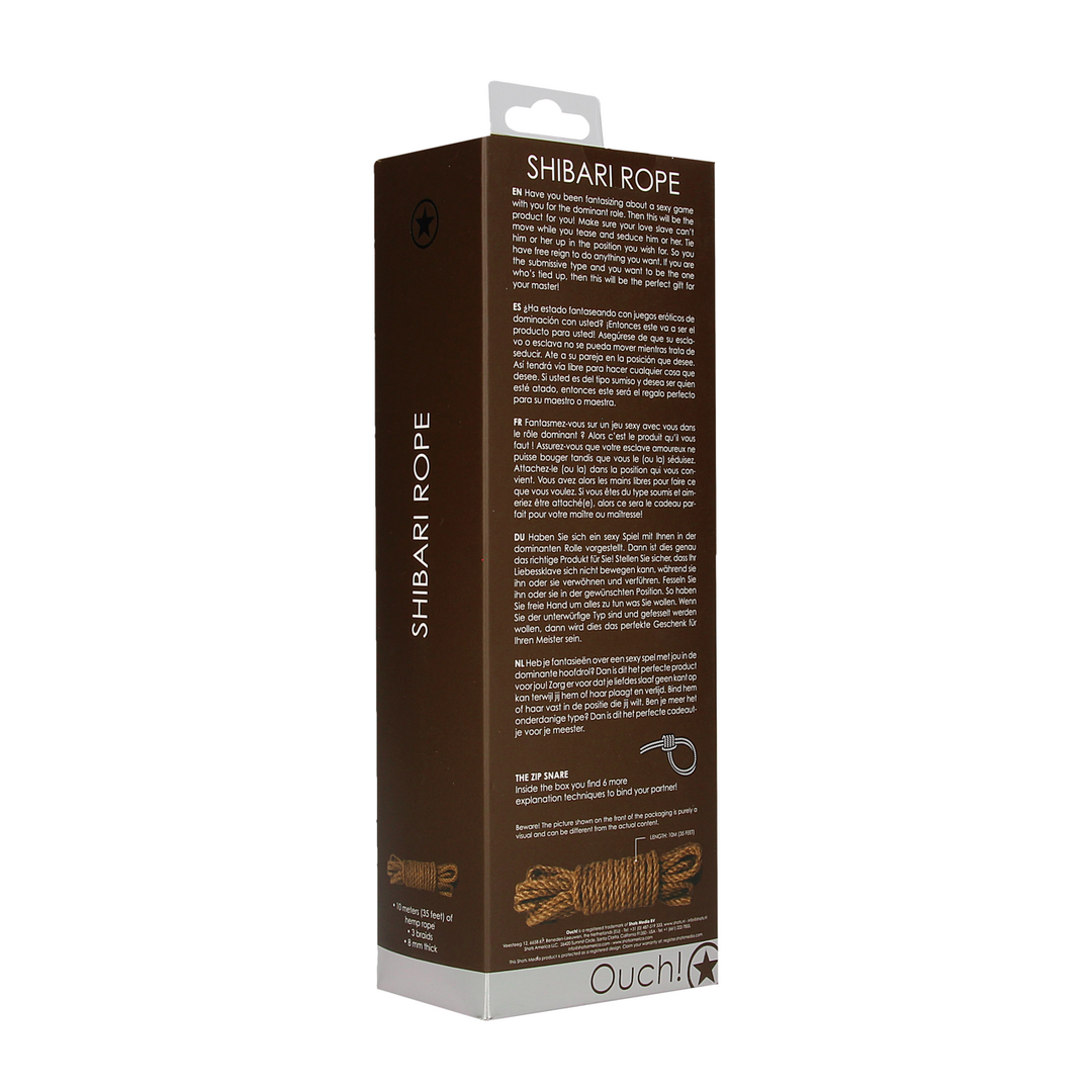Perfect voor een rollenspel10 m herbruikbaar Shibari-touw10 m herbruikbaar Shibari-touwPerfect voor beginners of ervaren BDSM-spelersBeleef ongelooflijke sensaties met dit speeltje van Ouch/