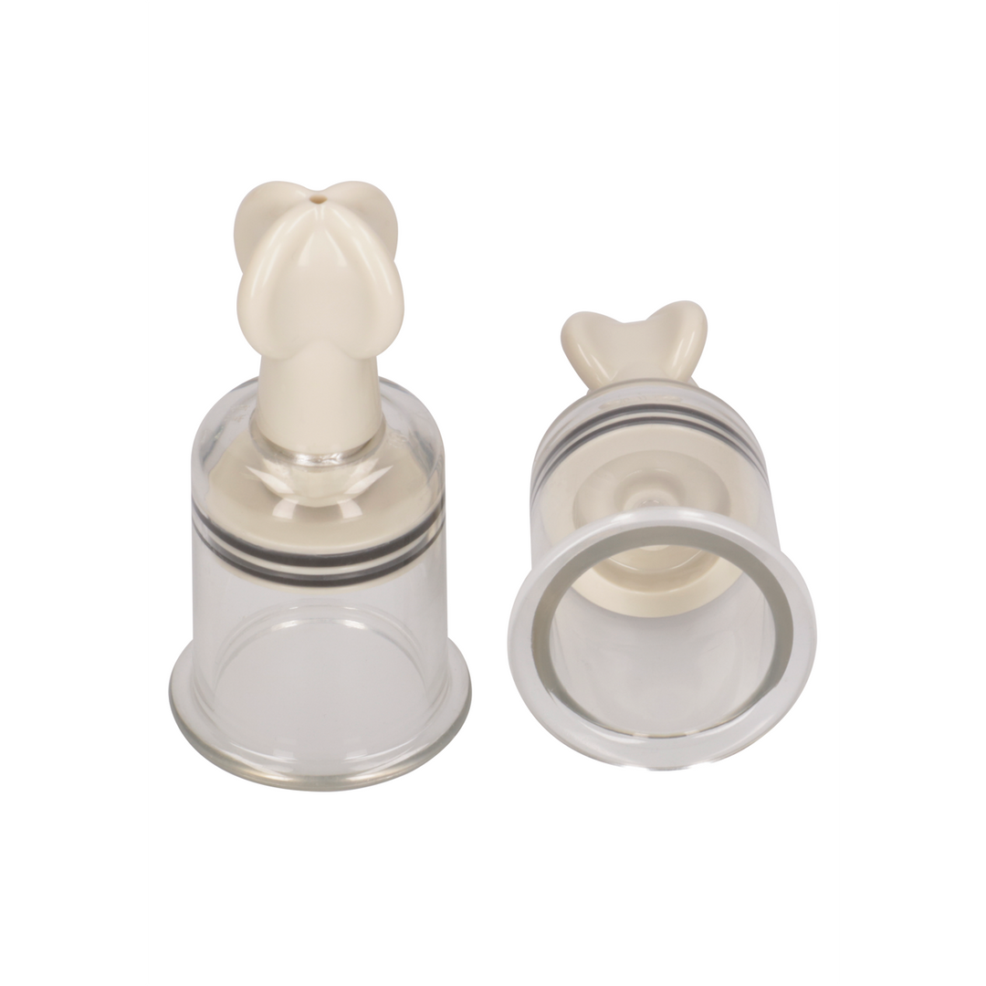 Combineer het plezier en de opwinding die deze tepelversterkersbieden, terwijl uw borsten worden getrakteerdop cupping massage. Sta versteld hoe verbazingwekkendeenvoudig en effectief deze zuignappen werken. Plaatsde zuignappen simpelweg op de gewenste plaats endraai de hendel handmatig waardoor de cups vast blijvenzitten. De OUCH!- SUCTION CUP NIPPLE ENHANCERSzijn gemaakt van stevig, hoogwaardig plastic, uitgevoerdin een witte/transparante kleur en worden geleverd in eenset van 2 in de maten S, M of L.