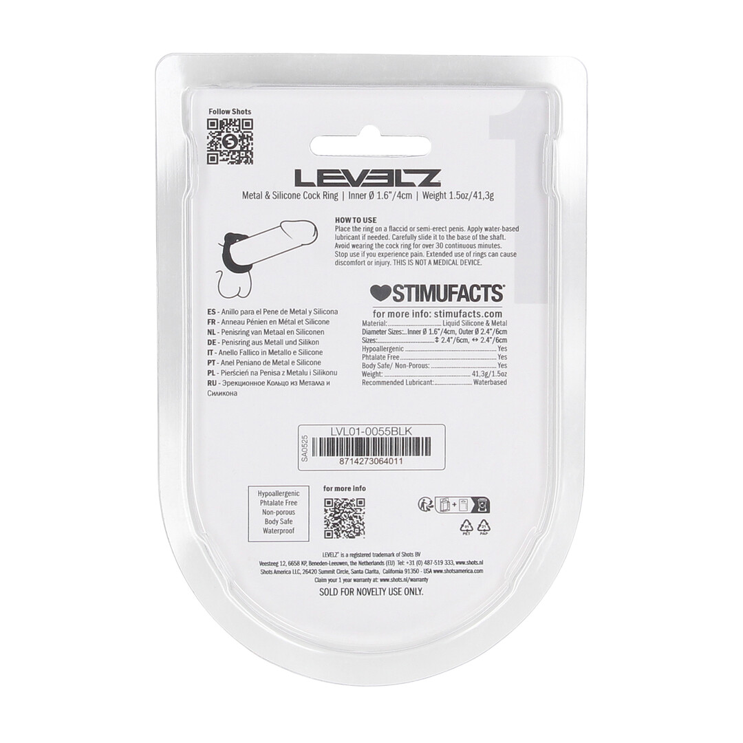 Get grounded in sensation with this premium cock ring from the LEVELZ collection. Made from soft, body-safe silicone and embedded with weighted metal balls, this non-vibrating ring adds extra pressure and a tugging feel for intensified pleasure. The metal cores provide subtle weight and stimulation with every movement. Packaged in a sleek clamshell for standout shelf appeal.